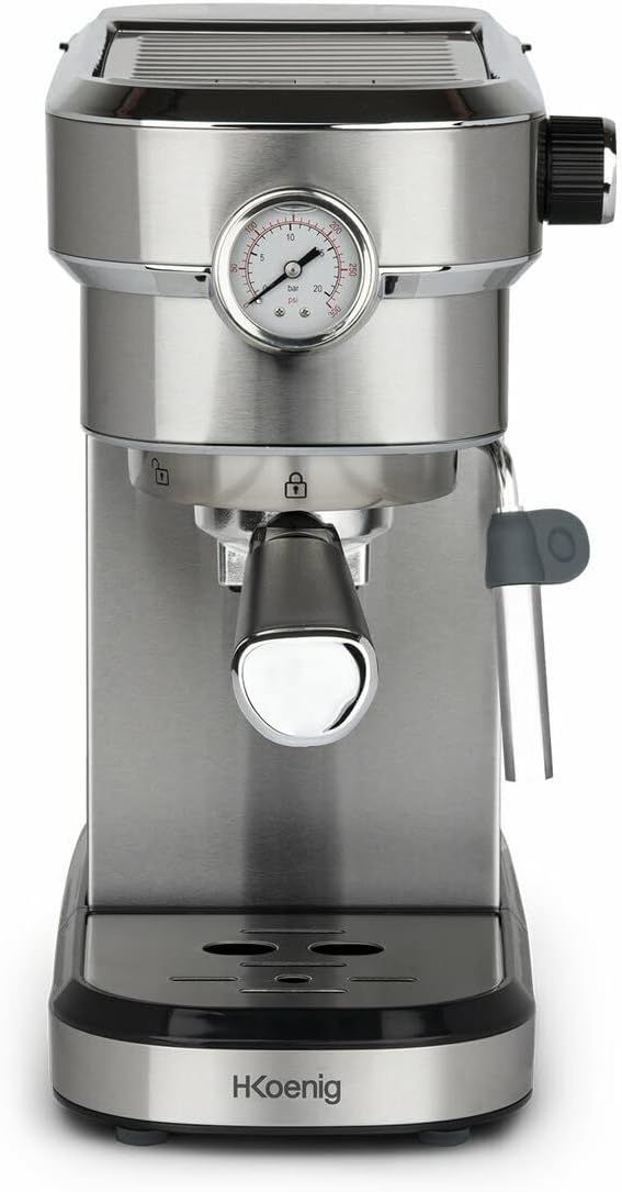 H.Koenig Machine Expresso Automatique Professionnelle Pression 20 Bar EXP820, Inox, Portable, Système thermoblock, 1.1L, Pompe baromètre intégré, Chauffe-tasses, Buse Vapeur, Cafés et Boissons lactées