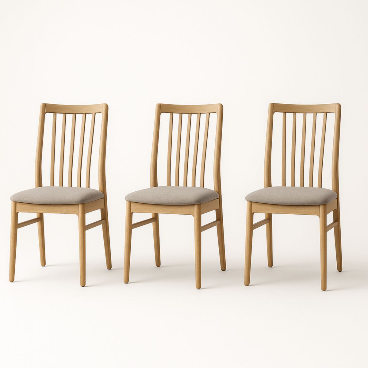 Lot de 3 Chaises en Bois de Chêne avec Assise en Tissu Gris