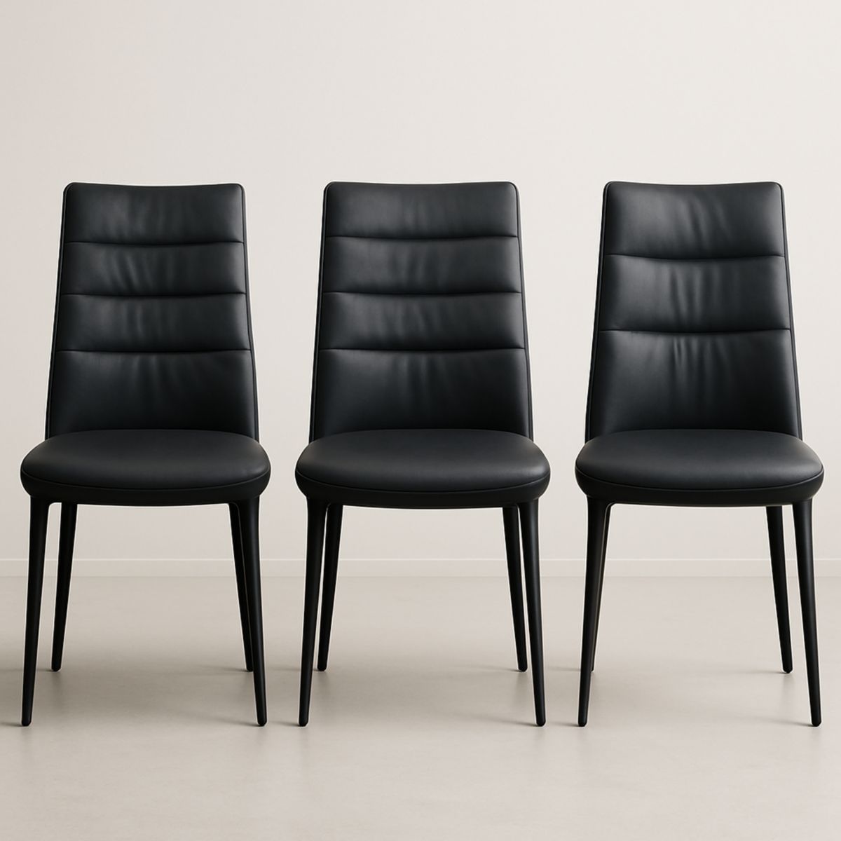 Lot de 3 chaises noires en cuir synthétique et métal