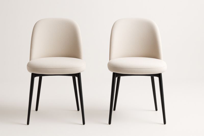 Paire de chaises en tissu beige avec pieds en acier noir